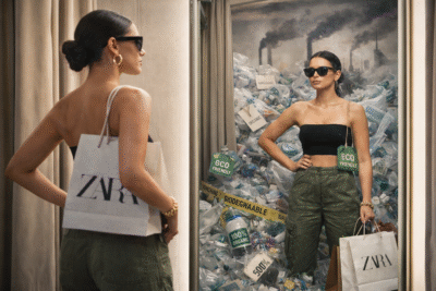 A eso se suma otra cosa: el greenwashing nos desgastó. Después de años de ver etiquetas que dicen eco, organic, conscious, recycled, sustainable pegadas sobre productos que forman parte del mismo sistema de siempre, mucha gente ya no cree en nada. Y con razón. El lenguaje de la sustentabilidad fue tan usado como maquillaje que terminó vaciándose. No solo producimos demasiado. También aprendimos a envolver ese exceso en una narrativa moralmente tranquilizadora.