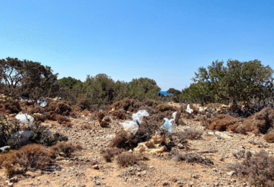 Vivo en Creta, donde todavía quedan paisajes de una belleza casi intacta. Pero incluso acá vas a encontrar bolsas enredadas en los arbustos y envases descartables en las playas. A una hora de mi casa hay una playa paradisíaca, Voulisma, con un agua que parece irreal. Hasta que fui un día en que soplaba un viento distinto, y el mar estaba lleno de microplásticos flotando. Cuando volví a casa y me saqué el traje de baño, tenía micropartículas sintéticas pegadas al cuerpo.
