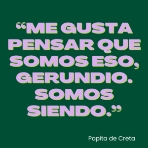 Y, sobre todo, somos proceso. El gerundio es el tiempo verbal que indica un proceso, una acción que estamos realizando (las terminaciones "ando", "iendo"). Me gusta pensar que somos eso, gerundio. Somos siendo. Y lo que yo te estoy compartiendo no es una idea terminada o una solución, porque no las tengo. Es sólo mi proceso y algún que otro descubrimiento, reflexión o herramienta.